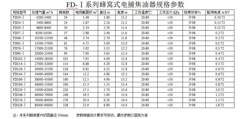 蜂窩式電捕焦油器殼體采用圓筒式結(jié)構(gòu),內(nèi)件沉淀極所采用結(jié)構(gòu)形式類似蜂窩式,蜂窩式的結(jié)構(gòu)是將通道截面為正六邊形。兩個(gè)相鄰正六邊形共用一條邊,即靠中間的正六邊形的六條邊均被包圍它的六個(gè)正六邊形所共用。用2-3mm的鋼板制成的蜂窩板即可滿足工藝和機(jī)械強(qiáng)度的要求。設(shè)備殼體由筒體、器頂封頭與器底斜底組合而成。整個(gè)除焦器分為上、中、下3 段, 上、中部為高壓靜電場(chǎng), 下部為集焦油室。浸漬罐煙氣由下端側(cè)面進(jìn)入, 凈化后的潔凈氣體由上端頂部由風(fēng)機(jī)排出, 除塵器底部留有人孔維修方便。下端進(jìn)氣口設(shè)有2 層多孔板型氣流分布板, 使氣體在電場(chǎng)中均勻分布, 中部為高4-5m 的高壓靜電場(chǎng)。 其原理即在金屬導(dǎo)線與金屬管壁(沉淀極板)間施加高壓直流電,使陰陽(yáng)極之間形成電暈區(qū)。當(dāng)含焦油霧滴等雜質(zhì)的氣體通過(guò)該電場(chǎng)時(shí),吸附了負(fù)離子和電子雜質(zhì)在電場(chǎng)庫(kù)倫力的作用下,移動(dòng)到沉淀極后釋放出所帶電荷,并吸附于沉淀極上,當(dāng)吸附于沉淀極上的雜質(zhì)量增加到大于其附著力時(shí),會(huì)自動(dòng)向下流并從電捕焦油器底部排出,從而達(dá)到凈化氣體的目的。蜂窩式電捕焦油器與其他焦油器相比,由于蜂窩式電捕焦油器具有結(jié)構(gòu)緊湊合理、沒(méi)有電場(chǎng)空穴,具有筒徑小,占地少,有效截面(氣凈化工作面)大,氣體處理量大成本低,電耗小,收焦油量大且油質(zhì)優(yōu)良,凈化效率高,處理后各種污染物可達(dá)標(biāo)排放的優(yōu)點(diǎn)。達(dá)到的技術(shù)指標(biāo),可明顯改善操作環(huán)境。